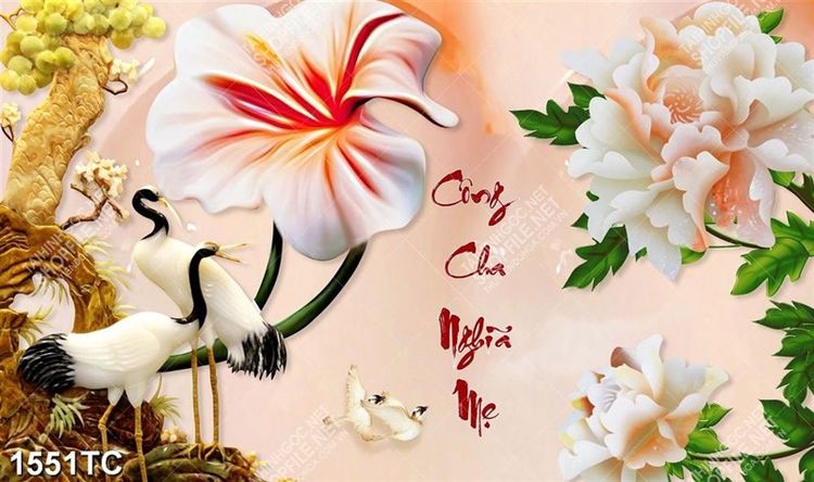 Tranh chim Hạc và hoa mẫu đơn