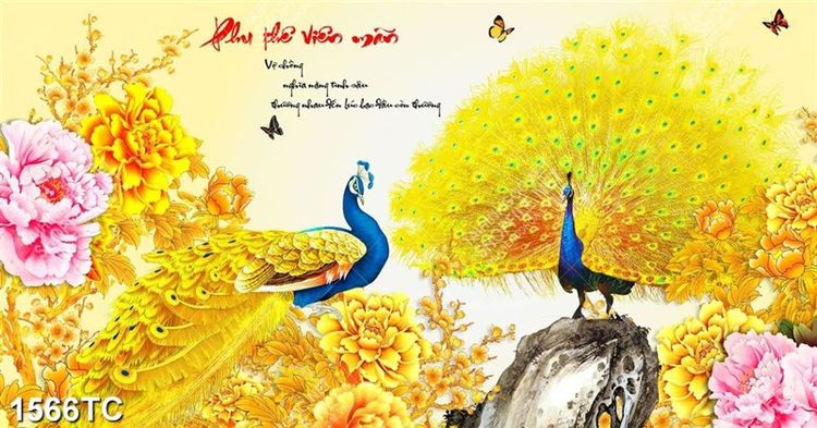 Tranh chim công và thư pháp Phu Thê Viên Mãn