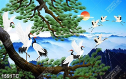 Tranh chim Hạc và cây tùng trên núi in uv