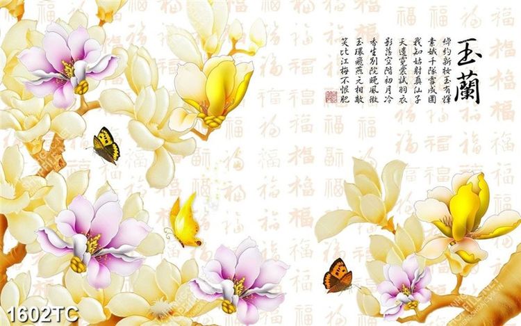 Tranh thư pháp chữ Trung Hoa và hoa mộc lan