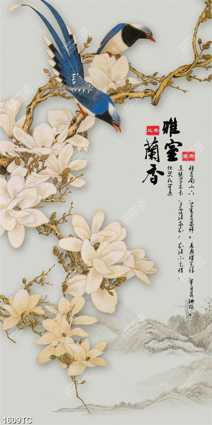 Tranh chim và hoa mộc lan