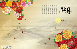 Tranh hoa mẫu đơn và chữ thư pháp