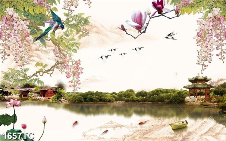 Tranh phong cảnh hữu tình và hoa tử đằng