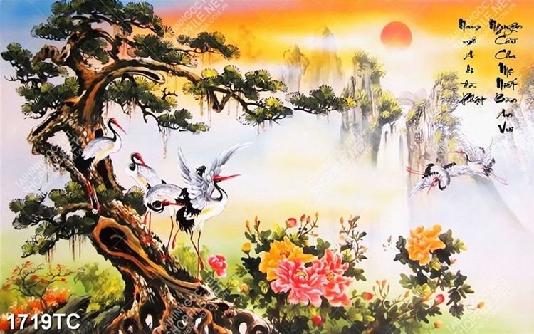Tranh sơn dầu cây Tùng và Hạc