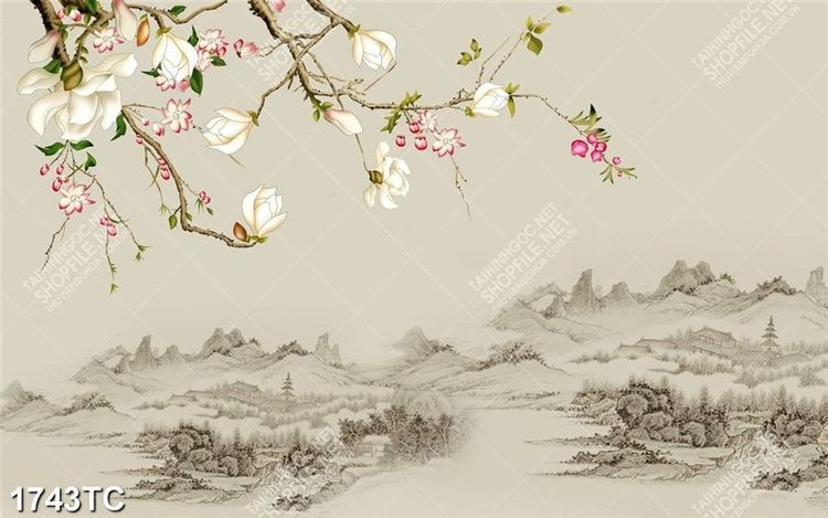 Tranh hoa mộc lan và cảnh quê hương