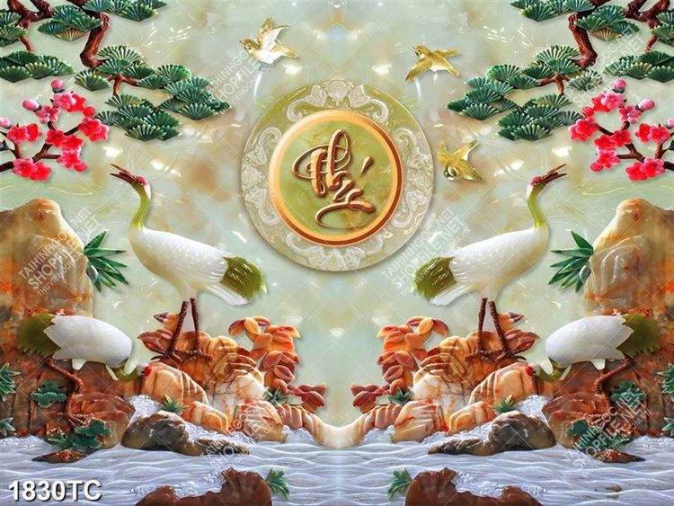 Tranh giả ngọc chim Hạc và thư pháp chữ Phúc