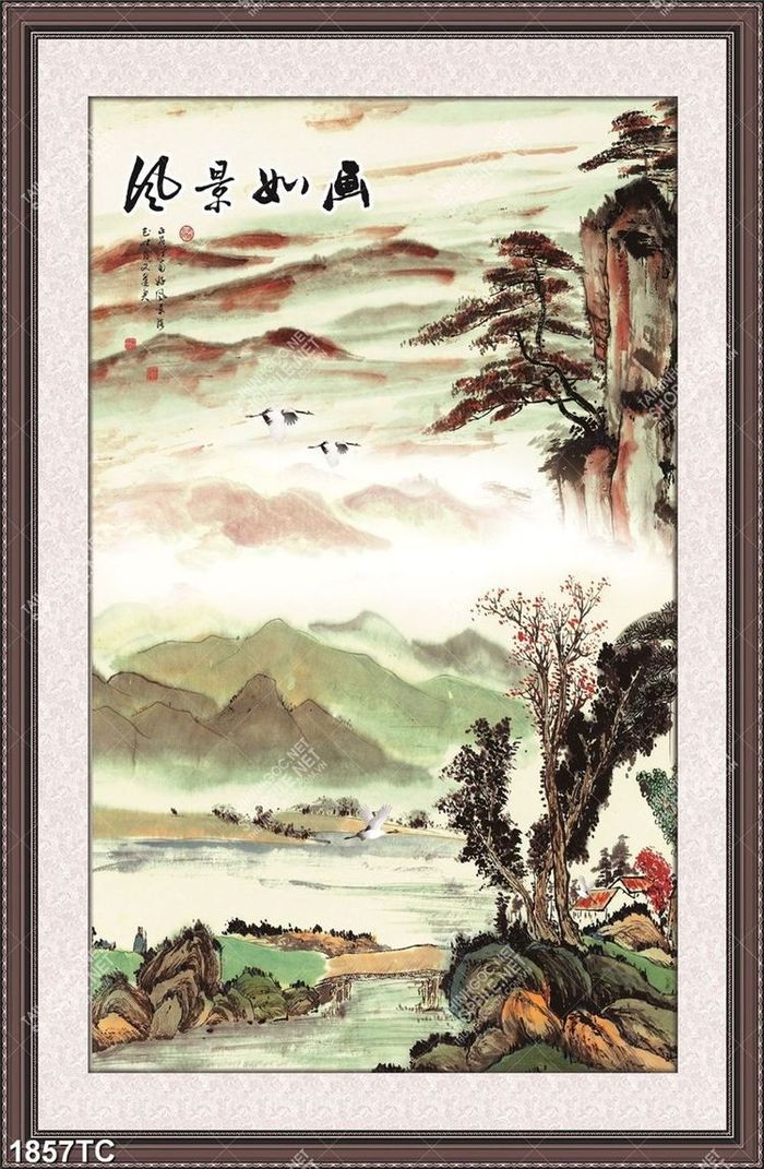 Tranh phong cảnh và chim hạc