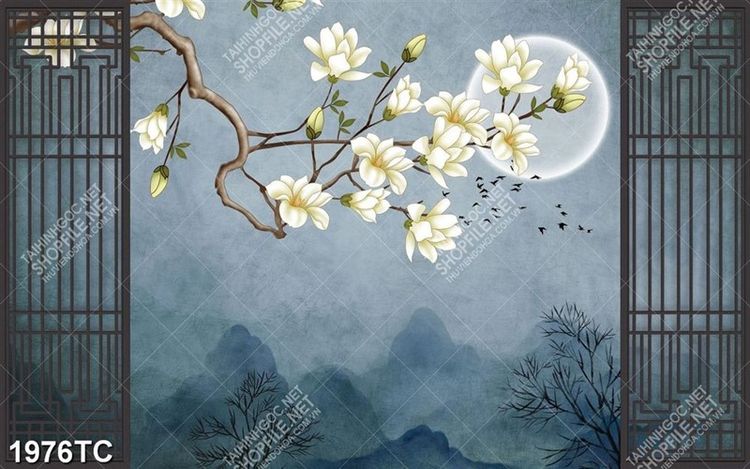 Tranh hoa mộc lan dưới ánh trăng