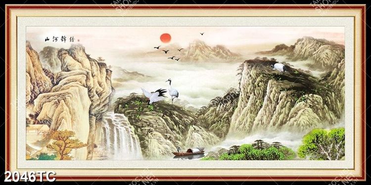 Tranh sơn dầu cảnh thác và núi