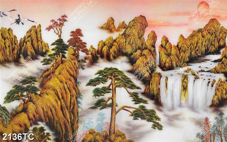 Tranh sơn dầu phong cảnh thác nước đẹp