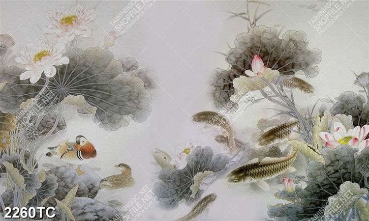 Tranh cá chép và hoa Sen in canvas đẹp