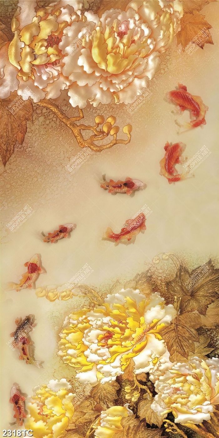 Tranh tài lộc hoa mẫu đơn và cá chép