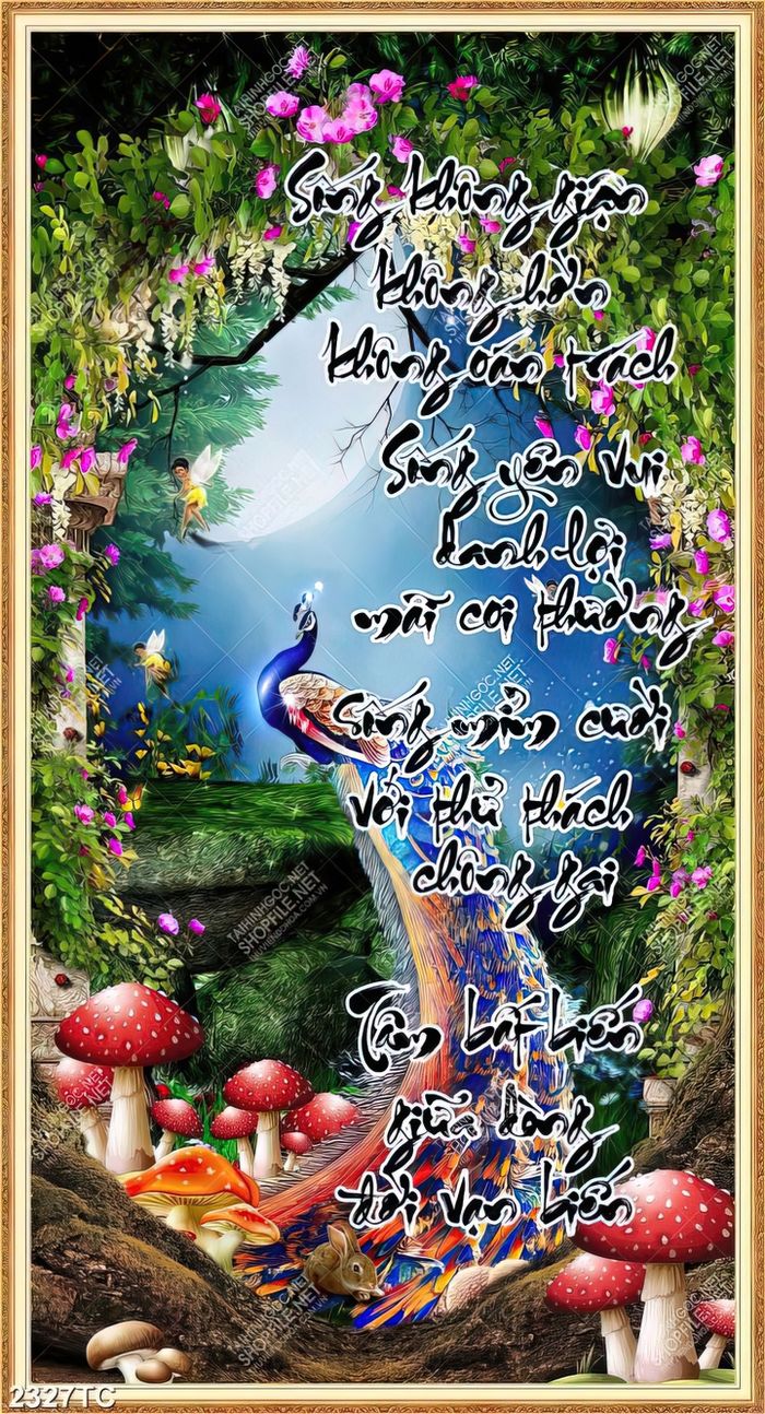 Tranh thư pháp chim công