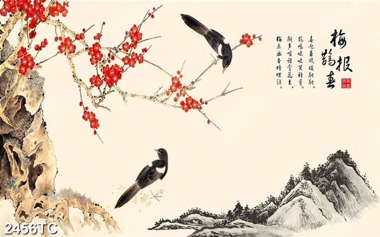Tranh hoa đào và chim sẻ