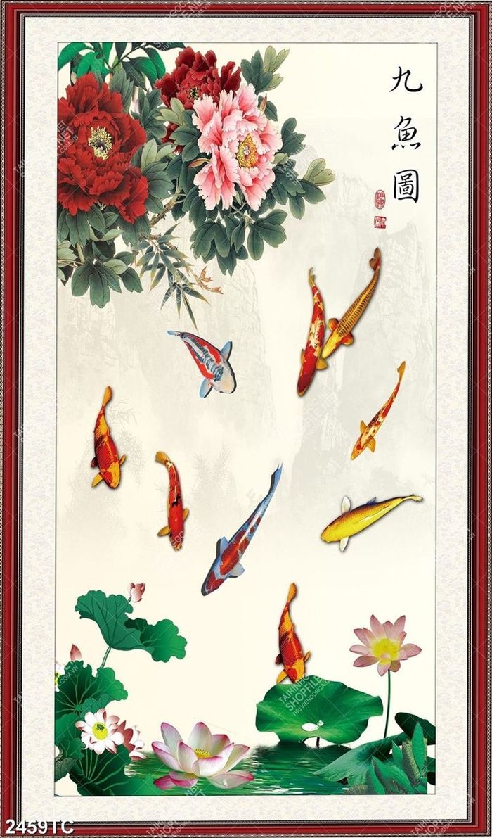 Tranh cá chép và hoa mẫu đơn