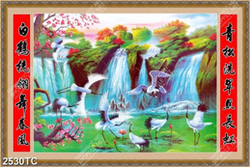 Tranh treo tường đàn hạc và thác nước phong thủy
