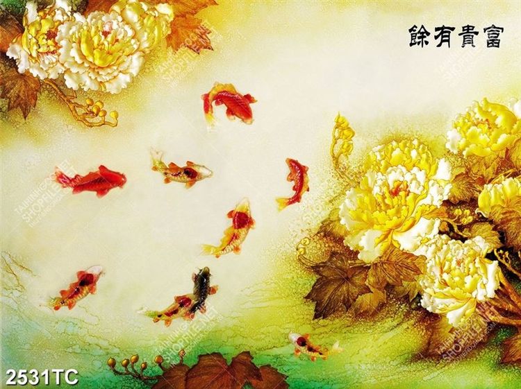 Tranh tài lộc hoa mẫu đơn và cá chép