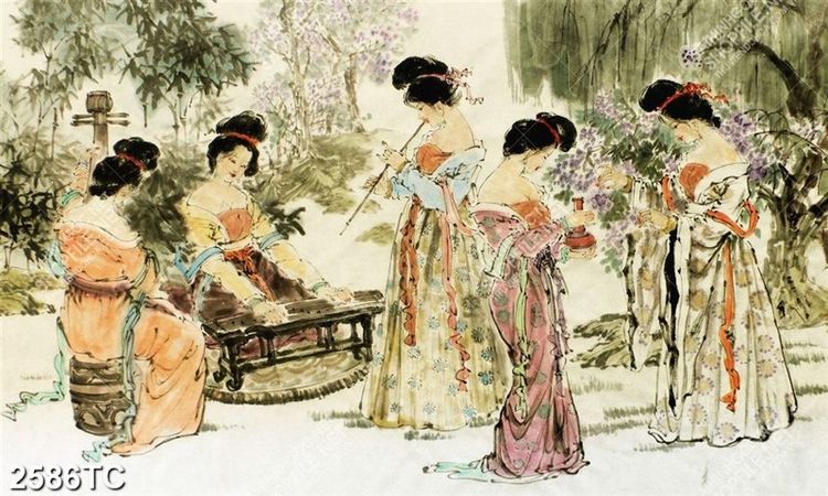 Tranh mỹ nhân chơi nhạc cụ