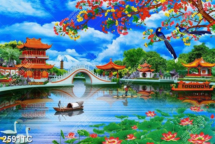 Tranh phong cảnh chùa Trung Hoa
