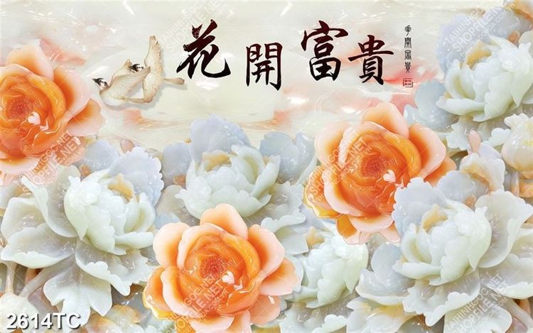 Tranh thư pháp gỉa ngọc hoa mẫu đơn