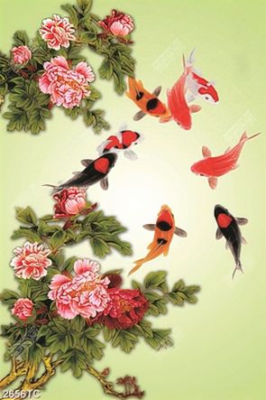 Tranh hoa mẫu đơn và cá chép