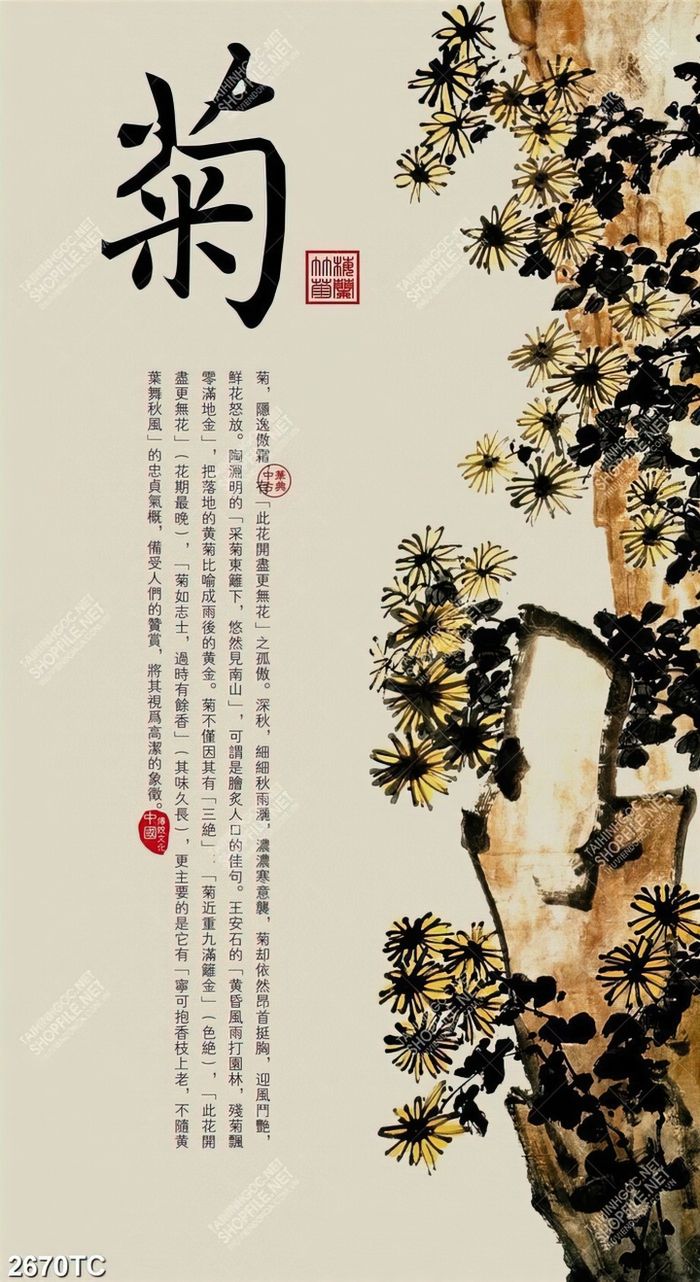 Tranh thuư pháp hoa cúc