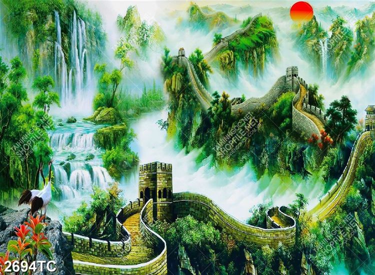 Tranh vạn lý trường thành và thác nước