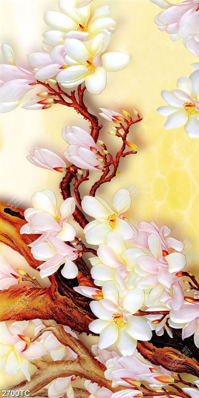 Tranh hoa mộc lan nền giả ngọc