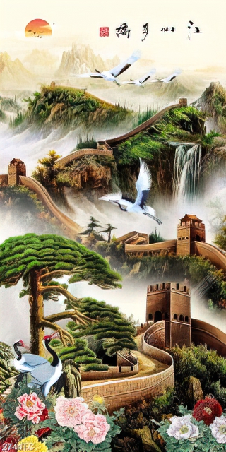 Tranh vạn lý trường thành và chim hạc