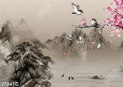 Tranh hoa đào và phong cảnh hữu tình