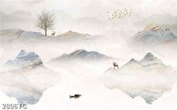 Tranh ghép hươu và sông núi