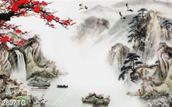 Tranh hoa đào và phong cảnh non nước hữu tình
