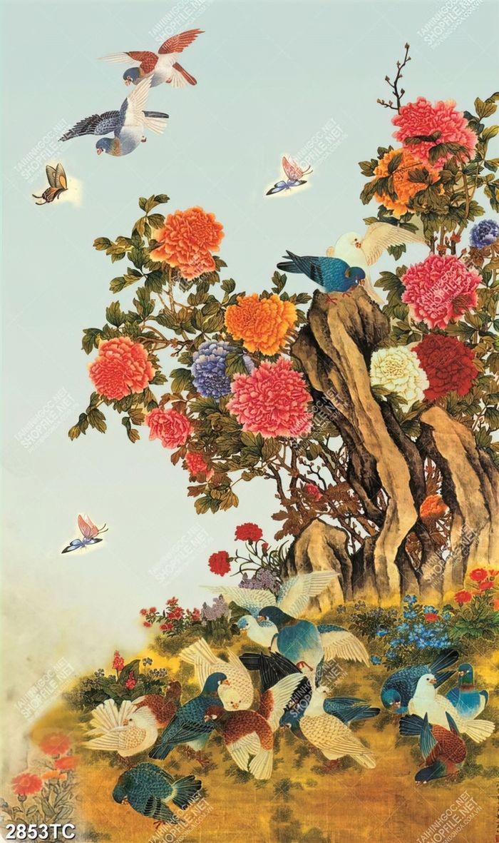 Tranh cây hoa mẫu đơn