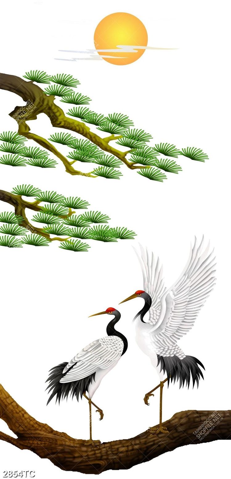 Tranh chim Hạc và cây Tùng