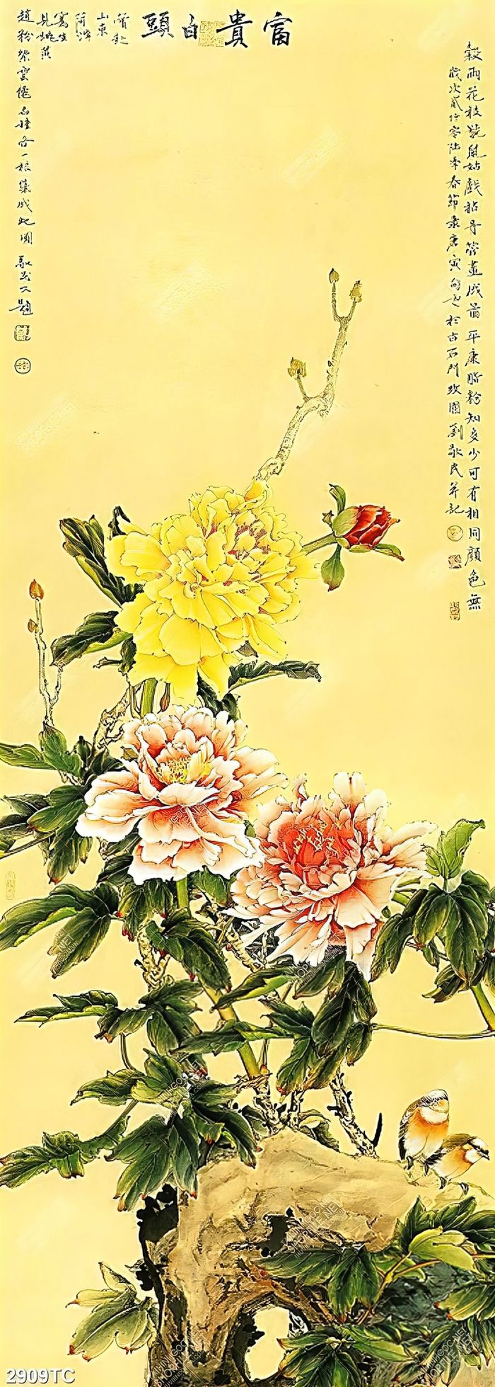 Tranh hoa mẫu đơn khổ dọc