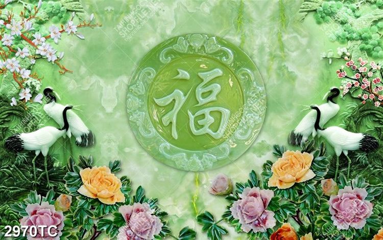 Tranh giả ngọc đôi chim Hạc và hoa mẫu đơn