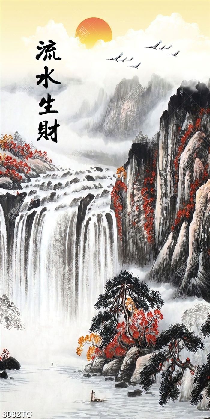 Tranh sơn dầu thác nước phong thuỷ