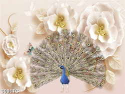 Tranh chim công nền hoa 3D