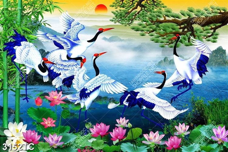 Tranh Hạc và hoa Sen