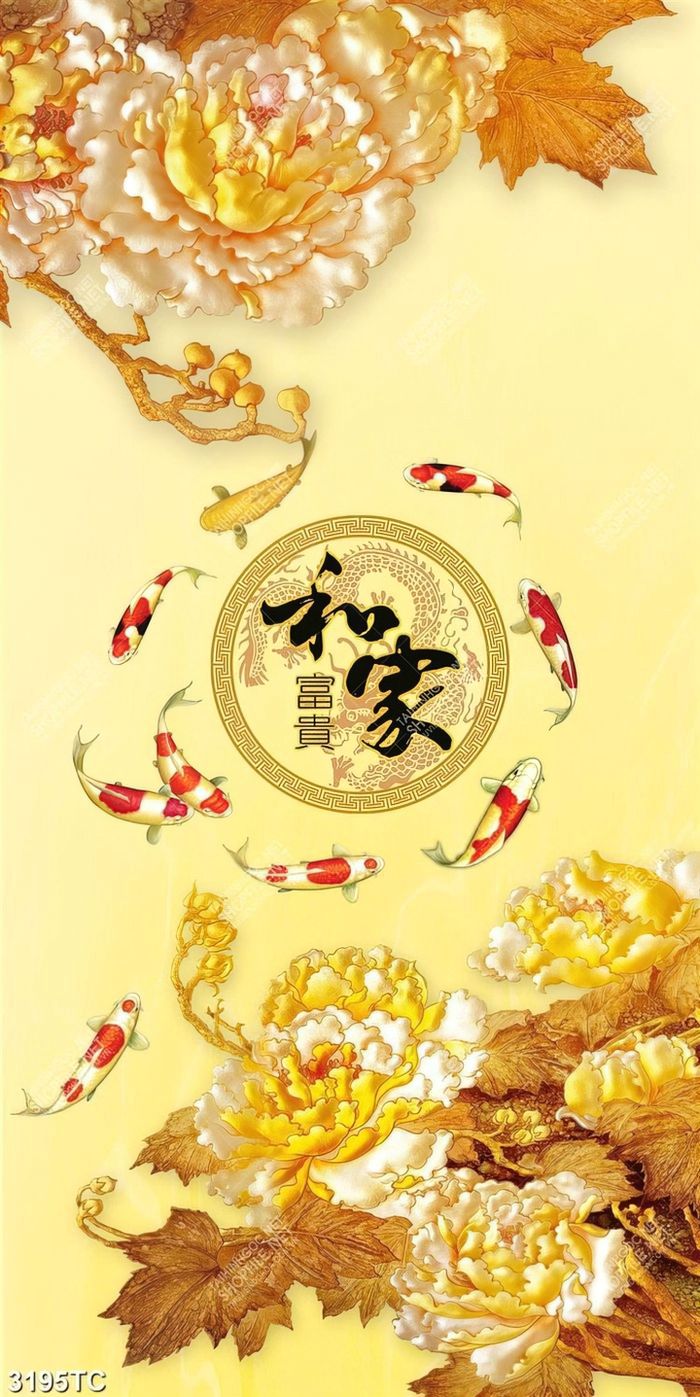 Tranh cá chép Koi và hoa mộc lan tài lộc