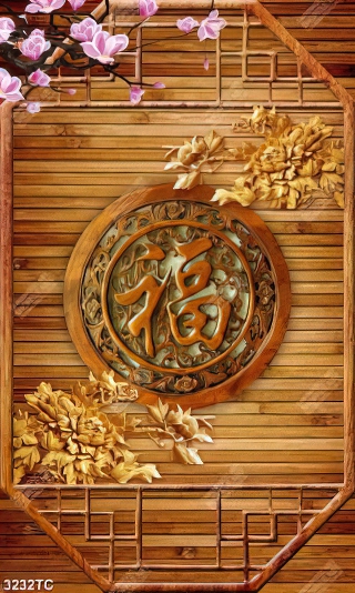 Tranh điêu khắc gỗ chữ tài lộc và hoa mộc lan
