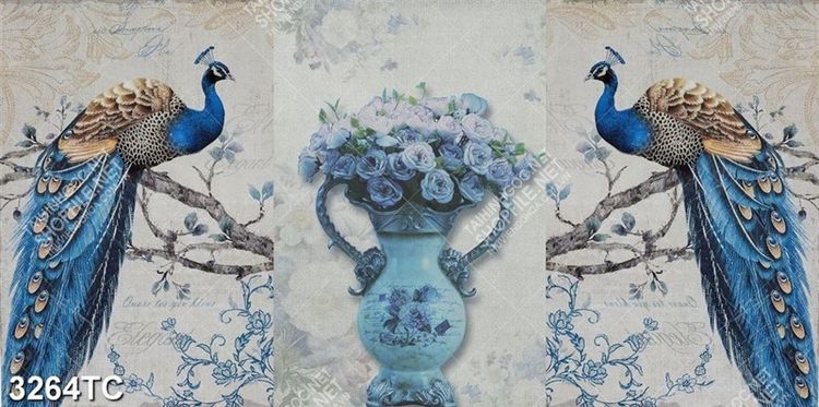Tranh ghép chim công và bình hoa
