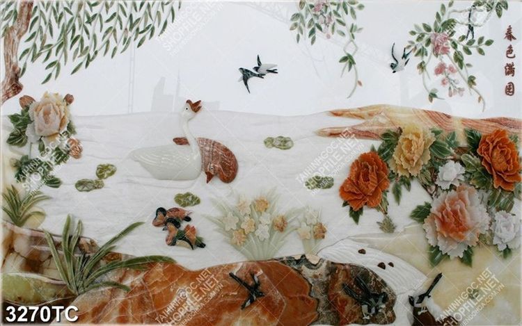 Tranh điêu khắc hoa mẫu đơn in gạch đẹp