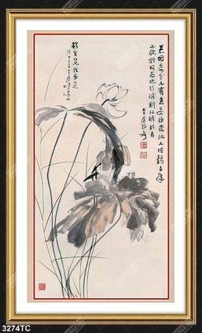 Tranh thư pháp hoa Sen