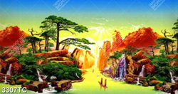 Tranh sơn dầu thác nước và thuyền trên sông