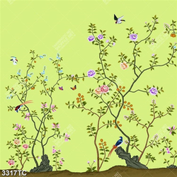 Tranh hoa hồng và chim in dán tường