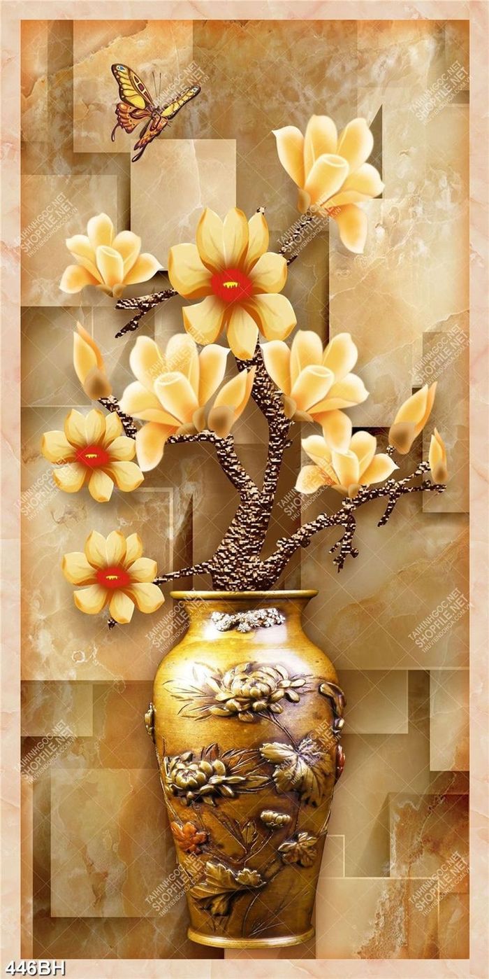 Tranh bình hoa 3d cành hoa mộc lan trên tường giả ngọc