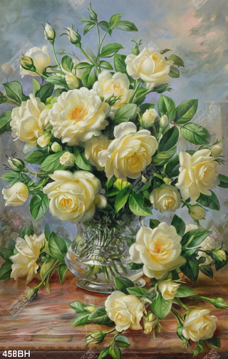 Tranh bình hoa decor những bông hoa hồng trắng muốt