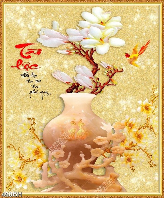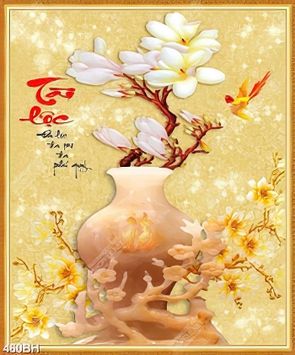 Tranh bình hoa mộc lan bên cành hoa mai giả ngọc psd