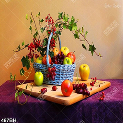 Tranh bình hoa decor những trái táo trong chiếc giỏ